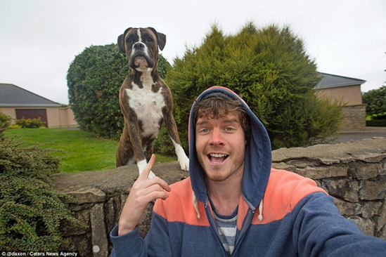 猝不及防:这只站在墙上的狗满脸困惑和惊诧。