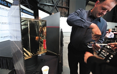 美国“行星资源”公司的工程师在对一个飞船模型进行最后的调试。这家公司旨在开采太空的小行星资源。