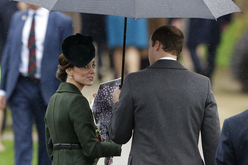 当地时间2015年12月25日,英国诺福克桑德林汉姆庄园,英国王室成员出席教堂圣诞节礼拜。(图片来源:美联社)