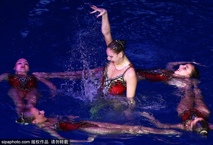 当地时间2015年12月24日,俄罗斯莫斯科,俄罗斯花样游泳冠军队倾情表演,众美女似出水芙蓉惊艳美丽。