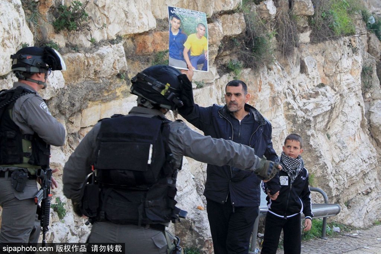 当地时间2015年12月26日,以色列耶路撒冷,巴勒斯坦民众在大马士革门外举行抗议活动,以色列安全部队驱散抗议者。(图片来源:希帕中国)