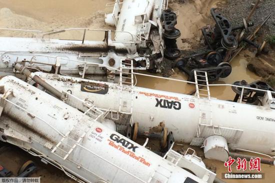 据报道,鸟瞰照片显示,脱轨列车散落在铁轨两侧,而当地近来爆发洪水灾情。