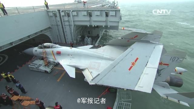 辽宁号航母机库画面曝光:舰载机出入(图)