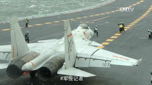 日前,海军辽宁舰在渤海某海域进行舰机融合训练,新一批歼-15舰载战斗机飞行员驾机完成触舰复飞、阻拦着舰等多个课目训练。
