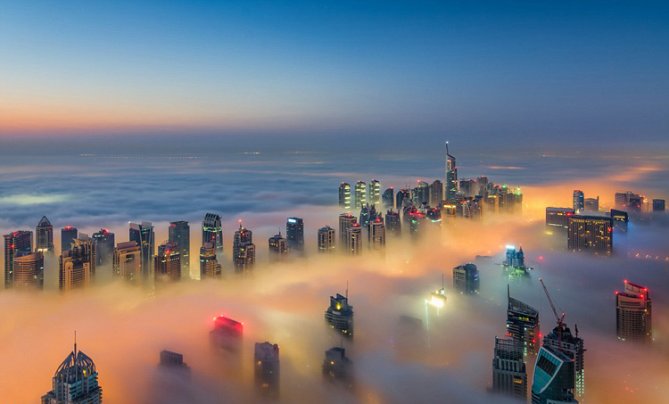 男子拍雾中的迪拜 五彩斑斓美如仙境【组图】