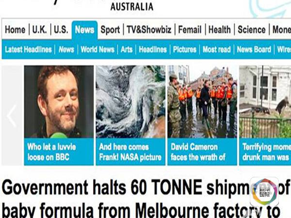 新华网北京12月30日电 据澳大利亚《先驱太阳报》29日报道,澳大利亚当局此前在墨尔本截获并扣押了60吨准备销往中国的婴儿配方奶粉和奶制品。