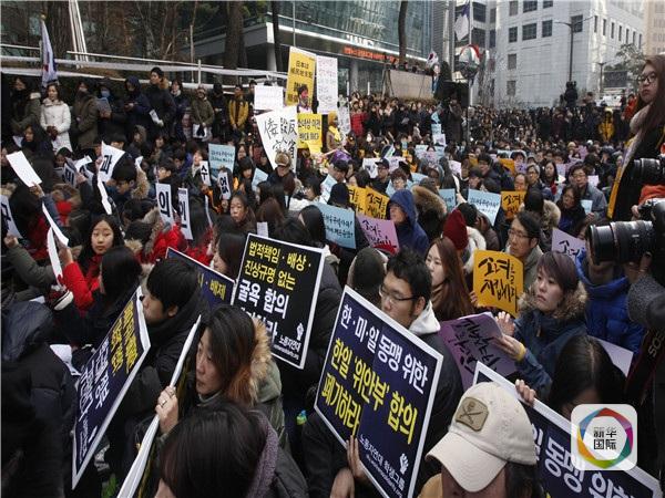 本月28日,韩日两国外长在首尔就日军“慰安妇”问题举行会谈并达成一致意见。不过,该决定遭到“慰安妇”受害者及相关市民团体的批评和反对。(记者张青、冮冶,摄影冮冶,新华国际客户端报道)