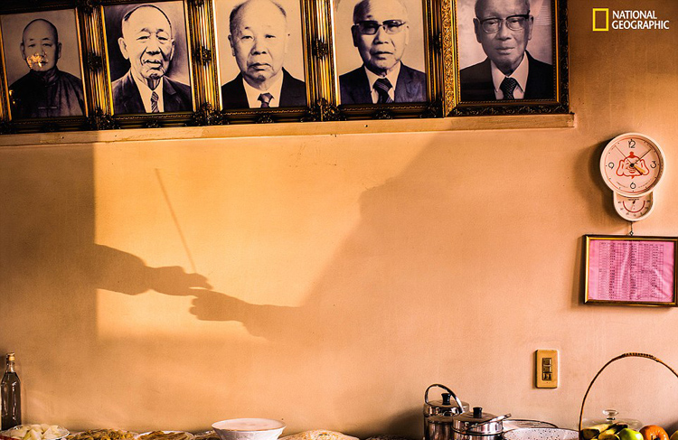 在台湾,2015年春节前夕拜祭先祖。