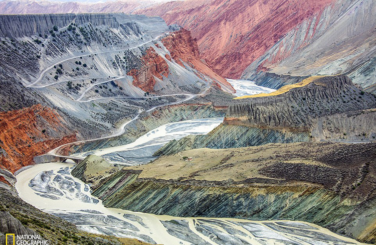 天山北面多姿多彩的高原和峡谷,仿佛自然中的超现实主义画作。