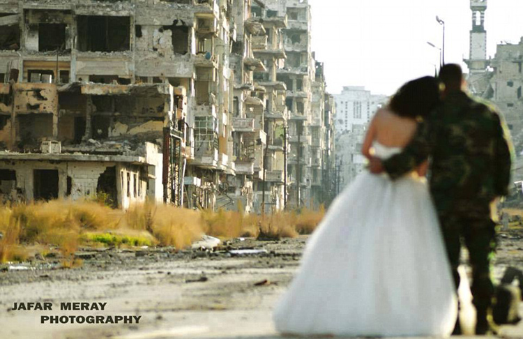 叙利亚新人废墟中拍婚礼照 鼓舞人心(组图)