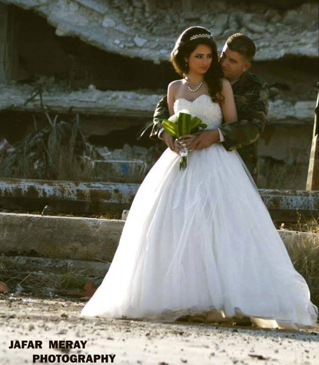 叙利亚新人废墟中拍婚礼照 鼓舞人心(组图)