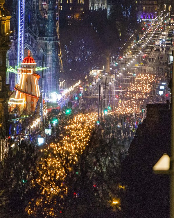 苏格兰万人举火炬游行 红红火火新年(组图)