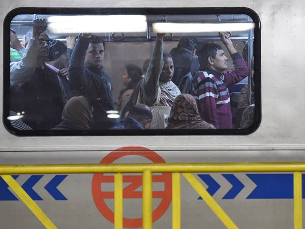 2016年1月1日,印度新德里市民乘地铁出行。为应对可以预计的客流波动,新德里地铁运行方加密了开行班次。(新华社记者毕晓洋摄)