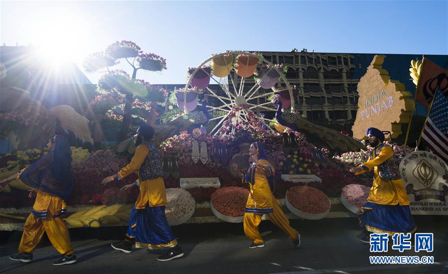 1月1日,美国洛杉矶帕萨迪纳市,玫瑰花车游行队伍经过科罗拉多大道。当日,美国洛杉矶帕萨迪纳市举行第127届新年玫瑰花车游行。玫瑰花车游行每年元旦在帕萨迪纳举行,今年的主题是“发现你的冒险”。新华社记者杨磊摄