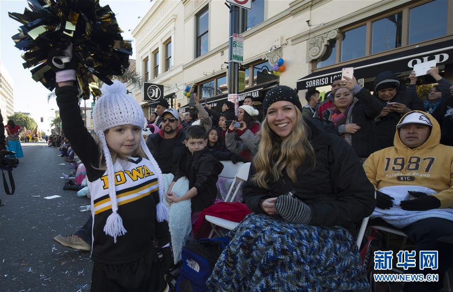 1月1日,美国洛杉矶帕萨迪纳市,观众在科罗拉多大道观看玫瑰花车游行。当日,美国洛杉矶帕萨迪纳市举行第127届新年玫瑰花车游行。玫瑰花车游行每年元旦在帕萨迪纳举行,今年的主题是“发现你的冒险”。新华社记者杨磊摄