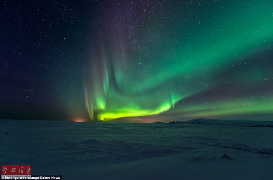 摄影师已经追寻北极光超过两个星期的时间,他说这是他第一次见到北极光。