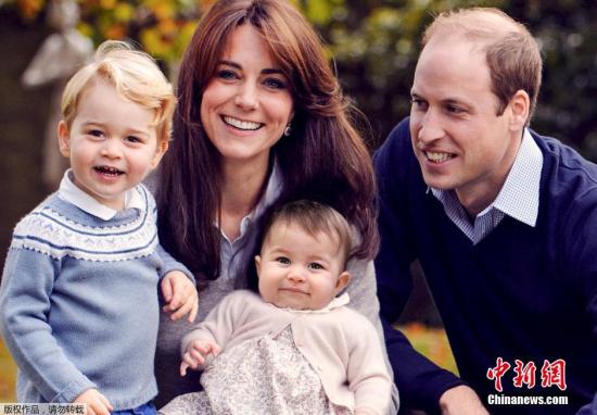 凯特将5月出生的女儿夏洛特公主抱在怀中,晋身哥哥的乔治站在妈妈旁边,威廉则在一旁看着他的家人。