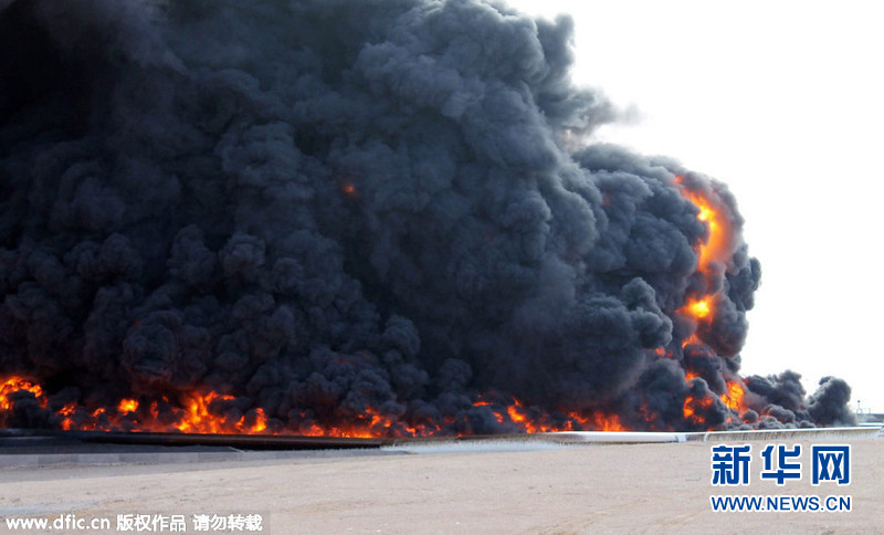 利比亚石油设施遭IS袭击后起火(高清)