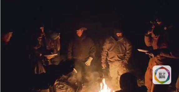 冰天雪地,平房石墙,这些民兵2日晚篝火取暖,3日在野生动物保护区入口设置路障。