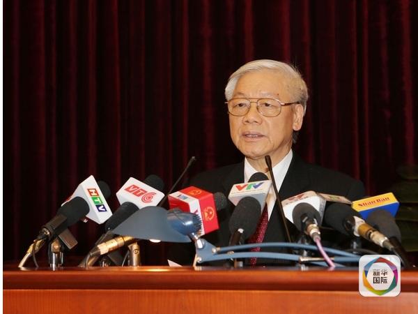 2015年12月21日,在越南首都河内,越共中央总书记阮富仲主持越南共产党十一届中央委员会第十三次全体会议闭幕式。(图片来源:新华/越通)