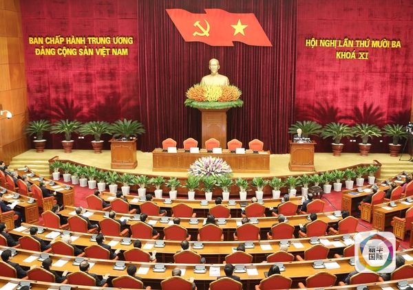 2015年12月21日,越南共产党十一届中央委员会第十三次全体会议闭幕式现场。(图片来源:新华/越通)