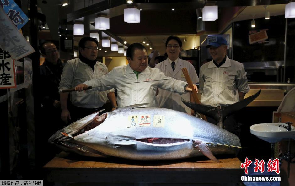 日本水产市场开市 巨型金枪鱼1400万日元成交
