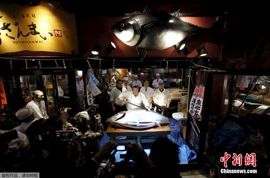 日本水产市场开市 巨型金枪鱼1400万日元成交