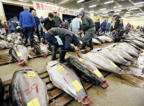 据悉,该市场11月将移到东京江东区的丰洲,因此这是在筑地的最后一场金枪鱼首拍。