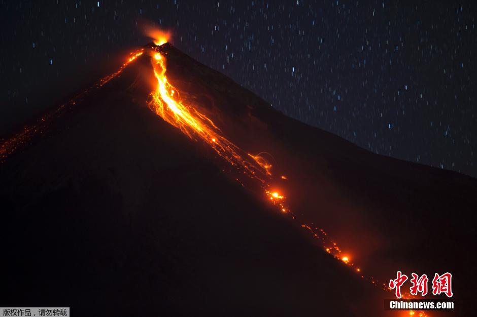 危地马拉富埃戈火山喷发 熔岩蜿蜒如火蛇【组图】