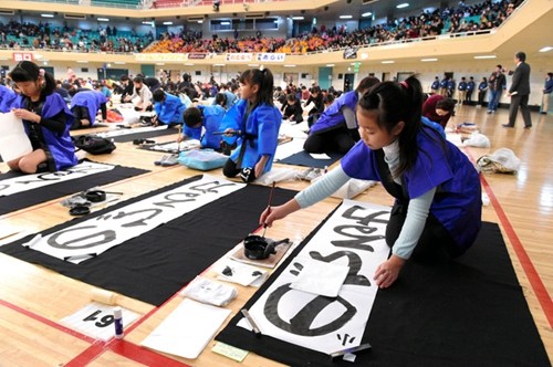 日本数千人同步秀书法 写下新年美好愿景(图)