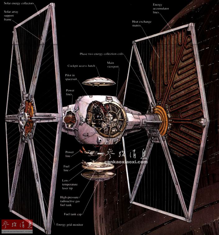 作为X战机的死敌,帝国钛战机(Tie Fighter)也是星战系列的标志之一。其全名为“双离子引擎战斗机”,为了节省宝贵资金建造更多歼星舰,帝国大量装备了结构简单的“钛”短程战机。为了最大限度地节省制造成本,钛战机不仅未配备超光速推进器,而且只搭载了2门激光炮。但对于钛战机来说,只要有压倒性的数量和出众的机动性就已足够。