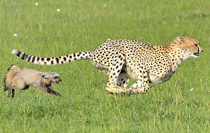 肯尼亚猎豹捕食野狗 反被猎物倒追【组图】