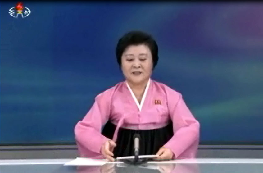 电视画面显示,播送这一重磅消息的,是年过七旬的著名朝鲜主播李春姬。在诵念新闻稿时,身着朝鲜传统服饰的女主播李春姬语气铿锵,面带自豪。