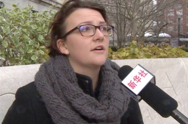 图为美国本地大学生接受新华社记者采访。