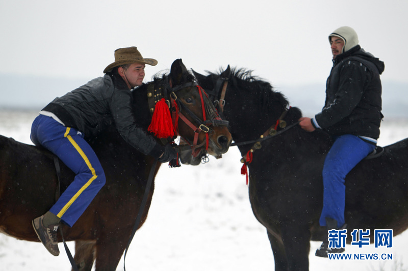 2016年年1月6日,罗马尼亚首都布加勒斯特以北约50公里的彼得罗沙尼村,村民们等待赛马比赛的开始。1月6日恰逢主显节,当地村民每年都会在这一天举行传统赛马,认为会给他们一年带来好运气,牲口健壮,粮食丰收。新华网发(克里斯泰尔摄)