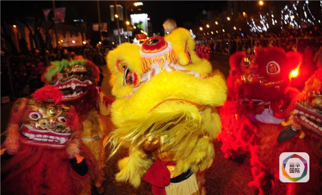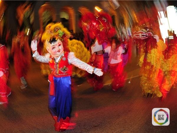 图为华人方阵里的舞狮队。(新华社记者爱德华多摄)