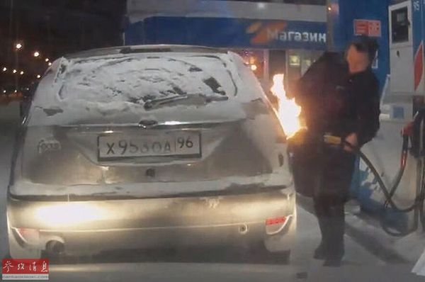 据俄罗斯独立电视台1月5日报道,俄罗斯苏尔古特一名女司机在加油过程中用了打火机,点燃了自己的汽车。这一幕被后面排队加油的汽车上的行车记录仪记录了下来。从视频中可以看到,这名女子先是将加油枪插到了车上,随后又将打火机靠近加油枪和车身相连的位置。随后,火焰瞬间将汽油点燃,女子惊慌失措地将加油枪从车身上拿下,漏出的汽油流在车身上使着火面积变得更大。报道中称,并不知道这名女子为何要在加油的过程中使用打火机。
