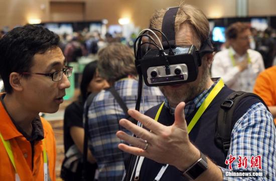 图为由华人团队创立的硅谷创业公司uSens凌感展示了他们最新的技术研发成果。 中新社记者 毛建军 摄