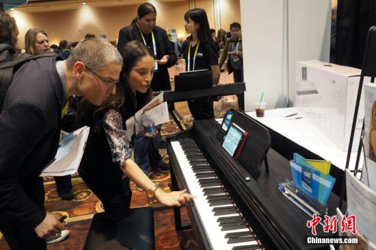 图为中国厂商设计生产的TheONE智能钢琴,是全球第一台通过苹果公司MFi认证的智能钢琴。 中新社记者 毛建军 摄
