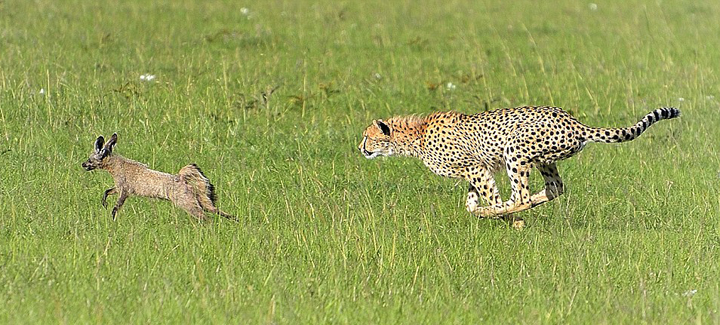 照片拍摄者是42岁的西班牙男子豪尔赫(Jorge Alescano)。当时,这只猎豹正在追逐一只野狗。突然,这只犬类动物一个急刹车,回身开始追逐猎豹。这只猎豹先是一个踉跄,随后疯狂逃跑,上演了荒唐尴尬的一幕。