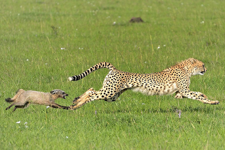肯尼亚猎豹捕食野狗 反被猎物倒追