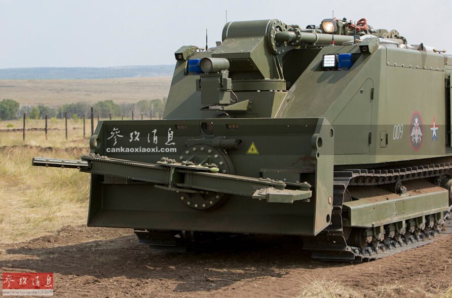 俄军出动“乌兰-14”无人装甲工程车,准备破除战场障碍物。