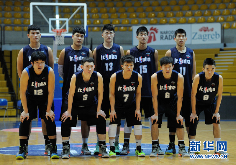 参加与萨格勒布希波纳高中生队比赛的清华附中男篮球员准备上场。新华网发(米绍·利沙宁摄)
