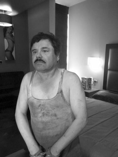 古斯曼被捕后,军方将他暂时关押在当地一家名为“Doux”的廉价宾馆,这引发当地人围观、拍照。古斯曼当天穿着一件脏兮兮的背心,神情木讷(如图)。之后,古斯曼被押往首都墨西哥城,再次关入之前脱逃的高原联邦监狱。