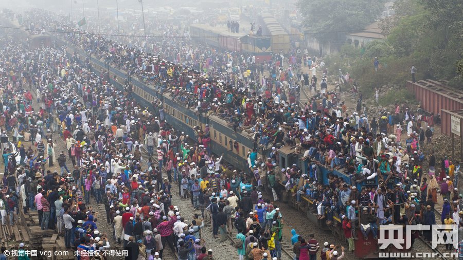 场面堪比春运 孟加拉国穆斯林挤火车参加穆斯林大会(高清)