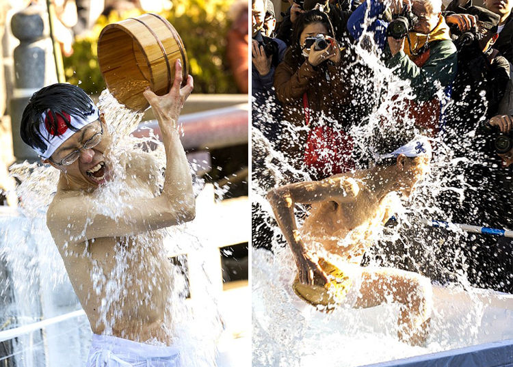 日民众不畏严寒参加冰浴仪式 祈求好运(高清组图)