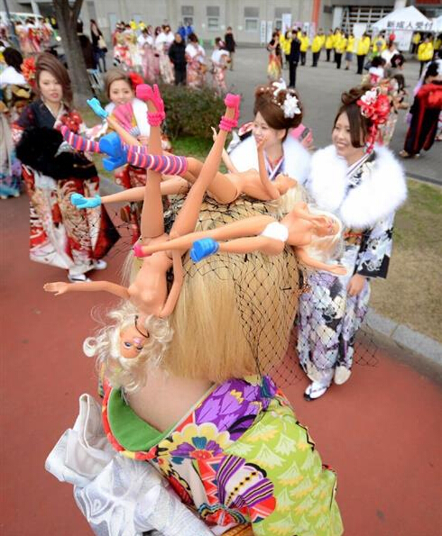 日本举行成人节活动 美少女秀“和服诱惑”(组图)