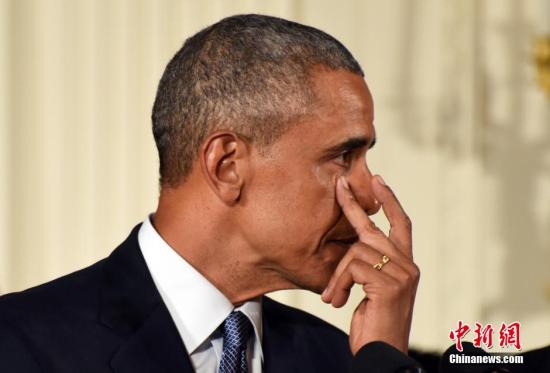 美国总统奥巴马当地时间1月5日在白宫举行发布会,宣布将采取系列行政措施遏制枪支暴力。他在提及2012年康涅狄格州纽敦桑迪胡克小学枪击案时落泪,直言“每次想到这些孩子,我都感到悲愤”。该枪击案造成20名学童死亡。图为奥巴马擦拭眼泪。中新社记者 张蔚然 摄