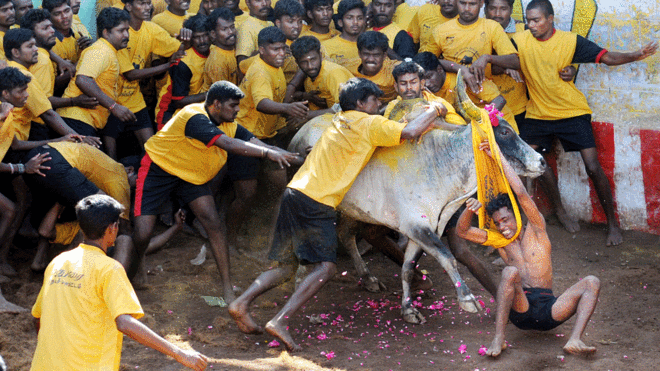 印度民众希望恢复传统“斗牛”活动(组图)