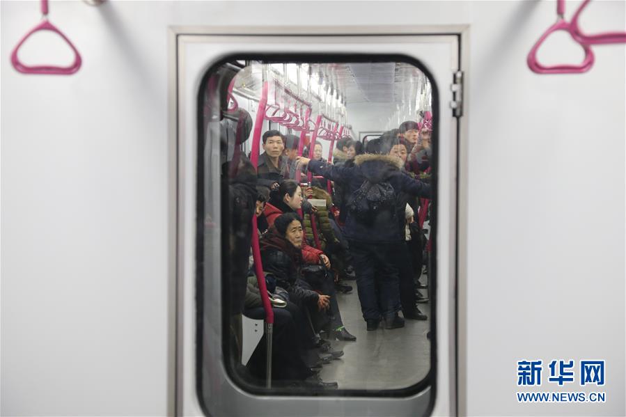 这是1月6日在朝鲜首都平壤拍摄的新建造的地铁列车车厢连接处。据朝中社报道,由朝鲜金钟泰电力机车联合企业制造的新型地铁列车于1月1日开始正式运行。目前平壤地铁只更换了一列新车,每日限时段运行,其他时段和车次仍由旧列车运行。新华社记者郭一娜摄